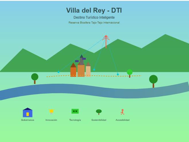 El Ayuntamiento de Villa del Rey, plenamente consciente del papel estratégico que desempeña el turismo como motor de desarrollo económico, cohesión social y sostenibilidad ambiental, manifiesta mediante el presente documento su compromiso firme con la conversión del territorio de la Reserva Biosfera Transfronteriza Tajo-Tejo Internacional al que pertenece, en un Destino Turístico Inteligente (DTI), según el modelo promovido por la Secretaría de Estado de Turismo a través de SEGITTUR.